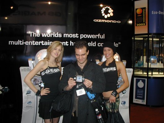 Hey guys, I found an actual picture of me posing with Gizmondo booth babes in Colors shirts: